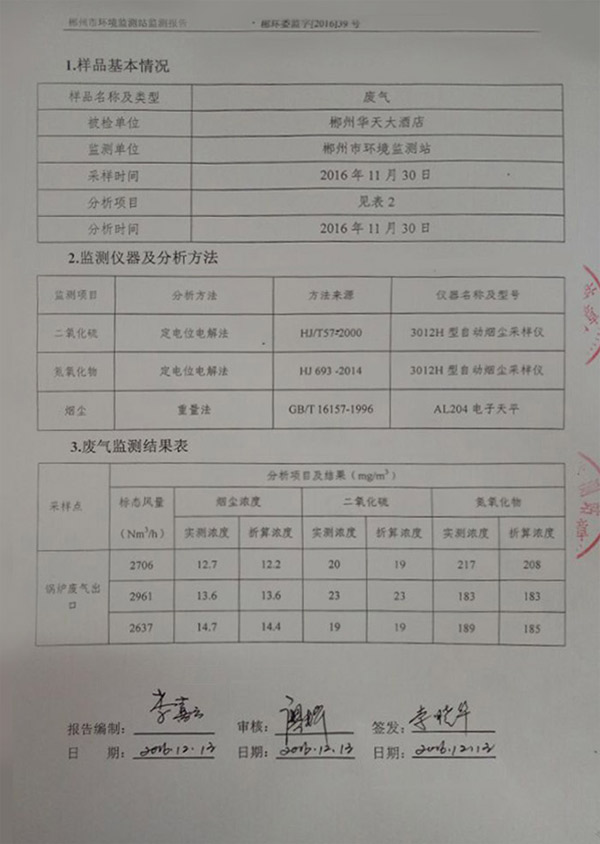 郴州市環境監測廢氣監測報告